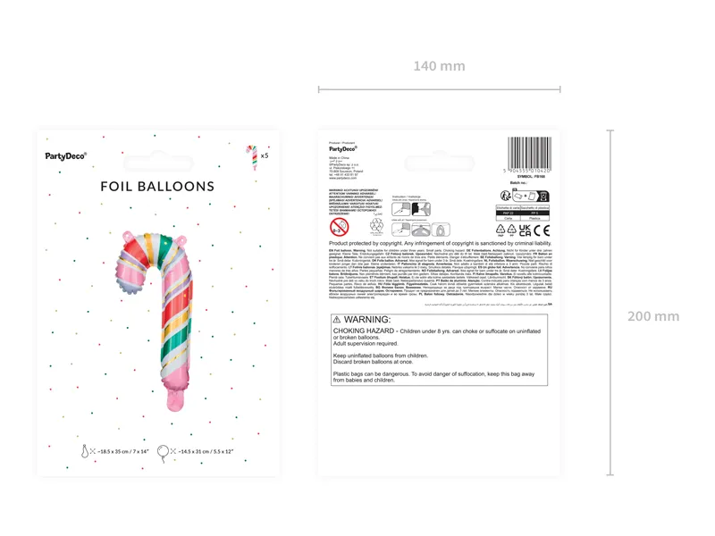 Balon foliowy Cukrowa Laska 18.5×35 cm (1 op. / 5 szt.)