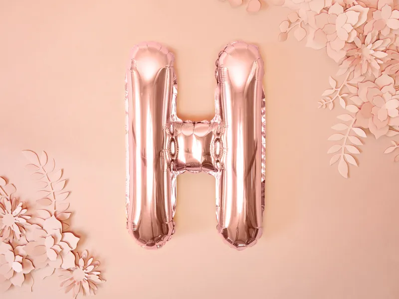 Balon foliowy metalizowany Litera ”H” w kolorze różowego złota, wysokość przed napompowaniem ok. 40 cm (16”), wysokość po napompowaniu ok. 35 cm (14”). Do napompowania powietrzem.