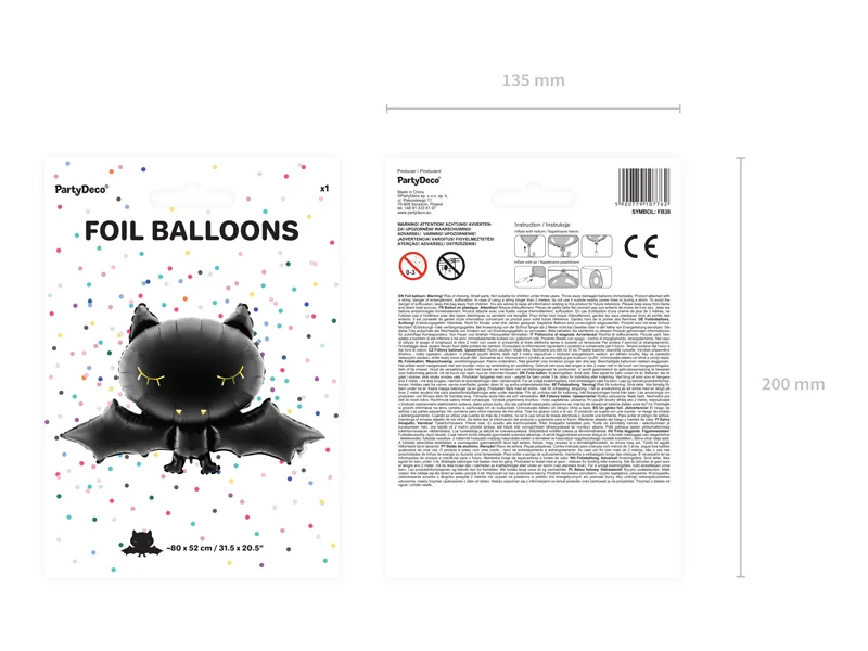 Balon foliowy Nietoperz w kolorze czarnym ze złotym nadrukiem, wymiary ok. 80 x 52 cm (31,5 x 20,5”).