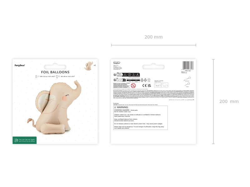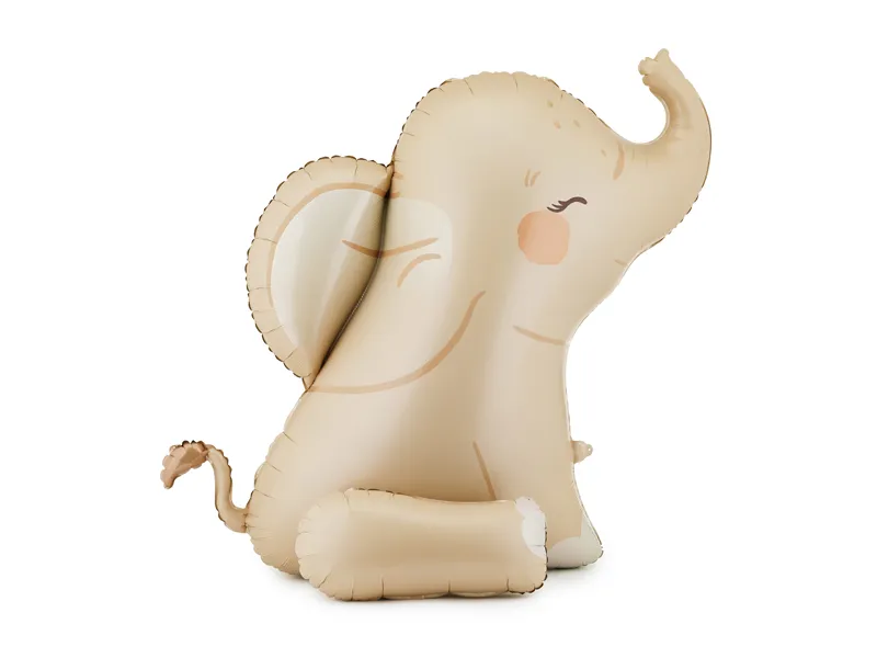Siedzący balon foliowy Słonik w kolorze beżowym. W opakowaniu znajduje się korpus oraz nogi. Przed napompowaniem należy umieścić nogi w zaznaczonych otworach w korpusie. Rozmiar przed napompowaniem ok. 109 x 113 cm (42.9 x 44.5”), rozmiar po napompowaniu ok. 84 x 90 cm (33.1 x 35.4”). Do napompowania powietrzem. Zestaw zawiera słomkę. Balon jest samouszczelniający się.