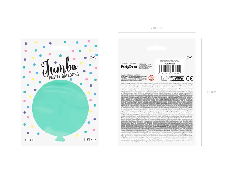 Balon pastelowy o średnicy ok. 60 cm w kolorze Light Mint , wentyl umieszczony u dołu.