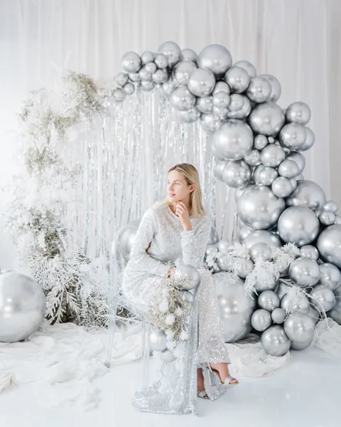Balon okrągły Glossy o średnicy ok. 60 cm w kolorze srebrnym.