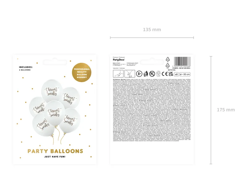 Zestaw 6 sztuk zawiera: 6 pastelowych w kolorze Pure White ze złotym nadrukiem.