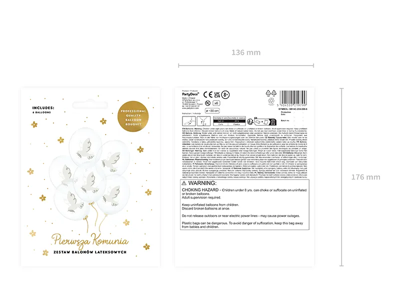 Balony Strong Gołąb, zestaw zawiera 6 balonów w kolorze Crystal Clear z kolorowym dwustronnym nadrukiem, średnica ok. 30 cm. (1 op. / 6 szt.)