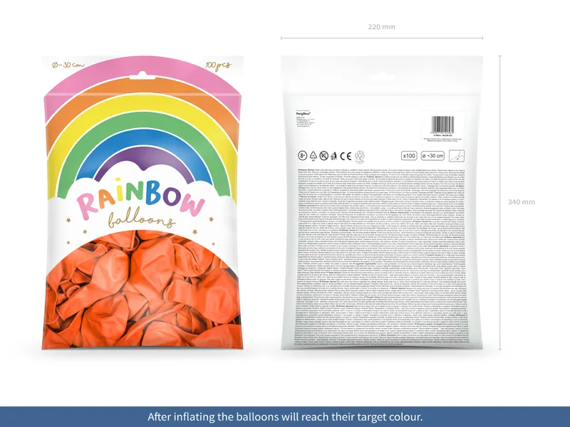 Balony Rainbow metalizowane w kolorze pomarańczowym, średnica ok. 30 cm. (1 op. / 10 szt.)