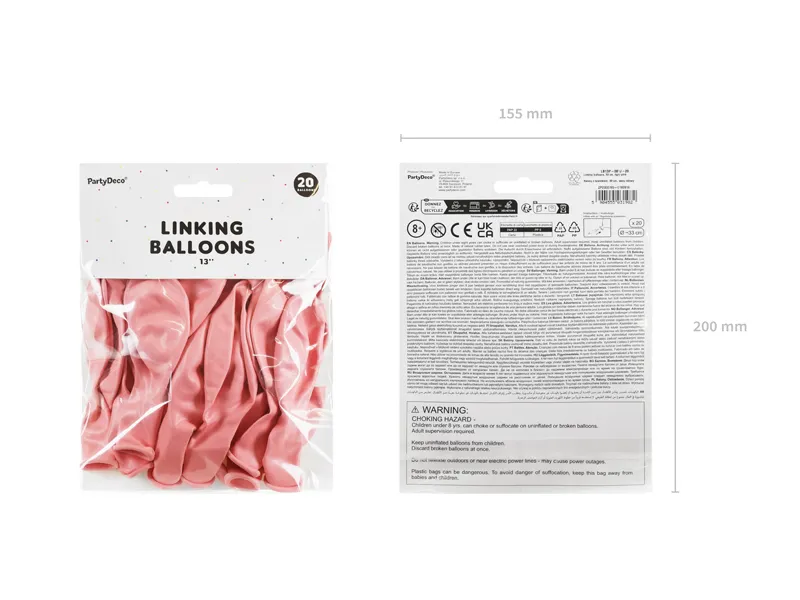 Balony z łącznikiem w kolorze jasnoróżowym, średnica ok. 33 cm (13”). (1 op. / 20 szt.)