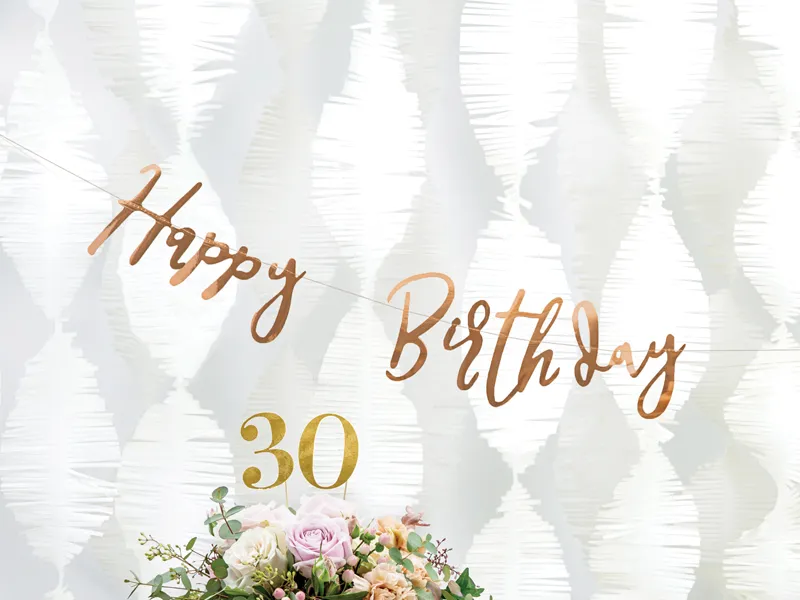 Nie ma nic lepszego niż rozpoczęcie urodzinowej zabawy od efektownej dekoracji, która natychmiastowo wprowadzi gości w wyjątkowy nastrój. Baner „Happy Birthday” w kolorystyce różowego złota o wymiarach 16,5 x 62 cm to element, który z pewnością przyciągnie uwagę i nada Twojemu przyjęciu niepowtarzalnego charakteru. Jego elegancka paleta barw doskonale wpasowuje się w najnowsze trendy dekoracyjne, łącząc subtelność z odrobiną luksusu. To baner, który doda przestrzeni blasku i sprawi, że każda uroczystość stanie się bardziej wyjątkowa.