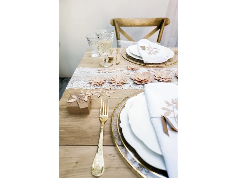 Dekoracja Gałązki z listkami w kolorze pudrowego różu, wykonana z papieru, mix wzorów, wymiary ok.: 6,5 x 17,5 cm (3 szt.), 8,5 x 17 cm (3 szt.) i 10 x 19 cm (3 szt.). (1 op. / 9 szt.)
