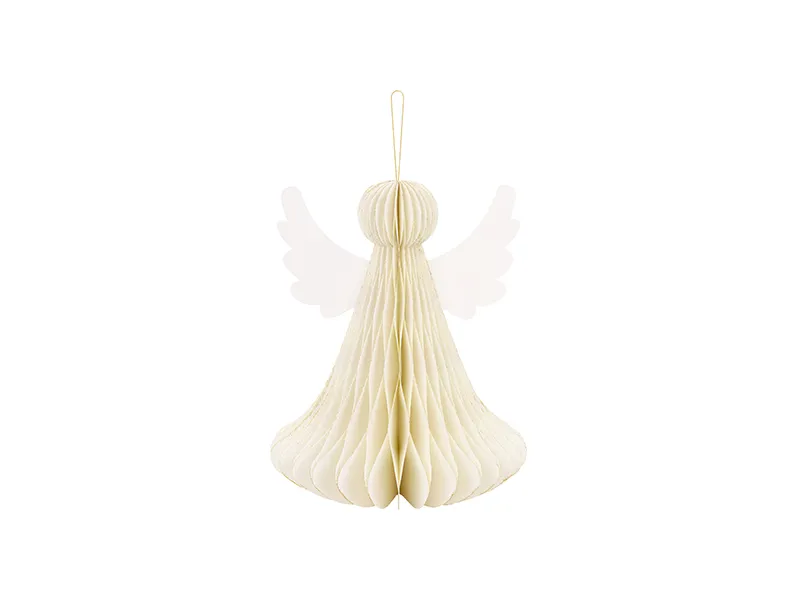 Dekoracja papierowa honeycomb Aniołek w kolorze kości słoniowej, wysokość ok. 24 cm.