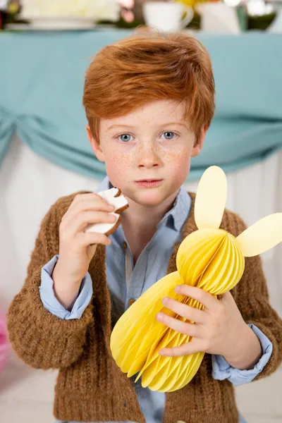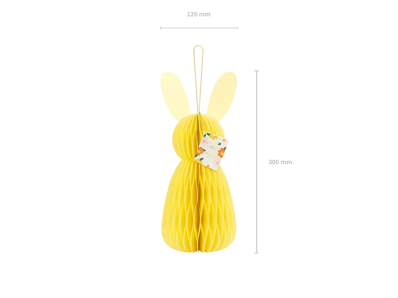 Dekoracja papierowa honeycomb Króliczek w kolorze żółtym, wysokość ok. 30 cm.