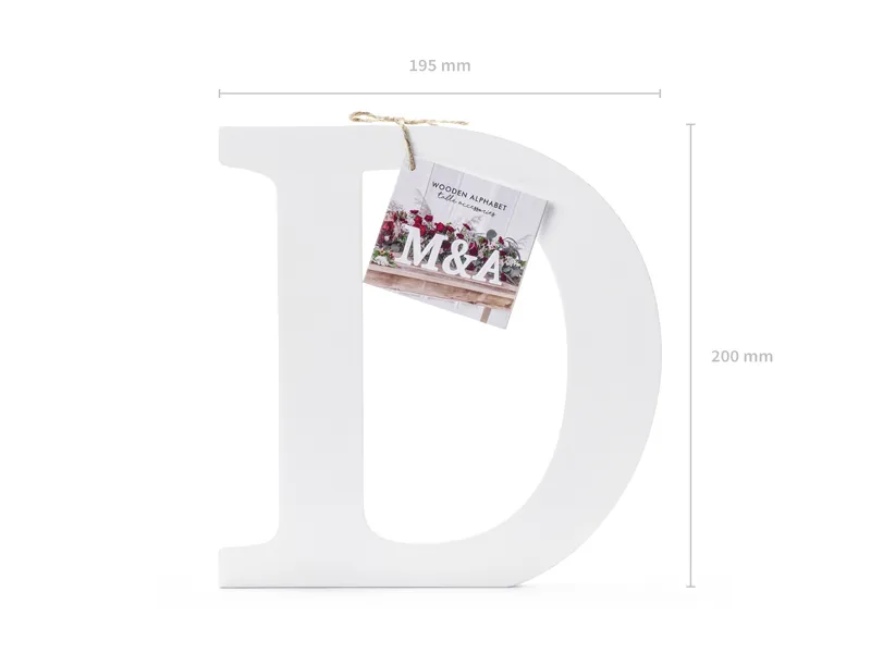 Drewniana litera D biała 19.5×20 cm