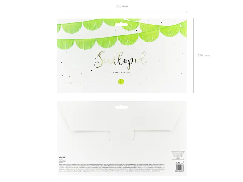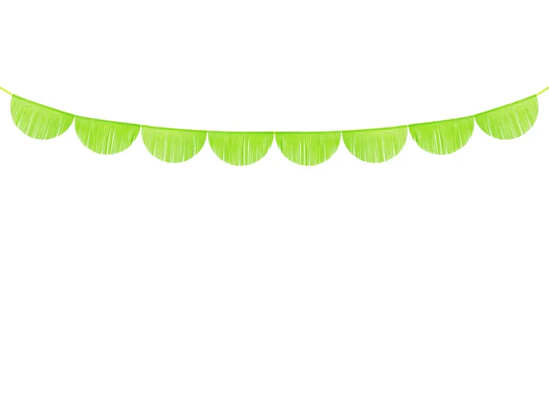 Girlanda bibułowa Frędzle w kolorze zielonego jabłuszka, szerokość pojedynczego modułu ok. 32 cm, długość girlandy ok. 3 m.