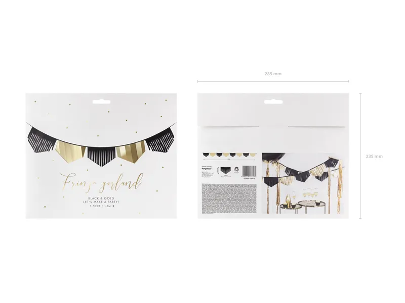 Chcesz, aby Twoje dekoracje zachwycały? Wybierz girlandę frędzle z czarnej bibuły i złotej folii, która doda wyjątkowego blasku i elegancji każdemu przyjęciu! Ta dekoracja o długości ok. 3 m doskonale sprawdzi się na urodziny, jubileusze, eventy i inne wyjątkowe okazje. Połączenie eleganckiego czarnego koloru z złotą folią tworzy unikalny efekt, który przyciągnie wzrok i nada każdemu wnętrzu stylowego charakteru.