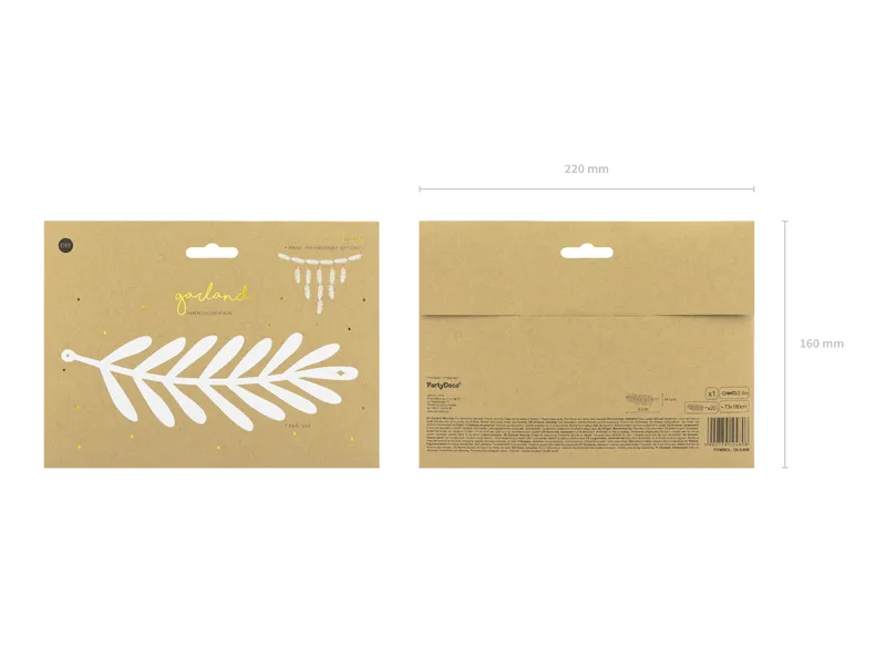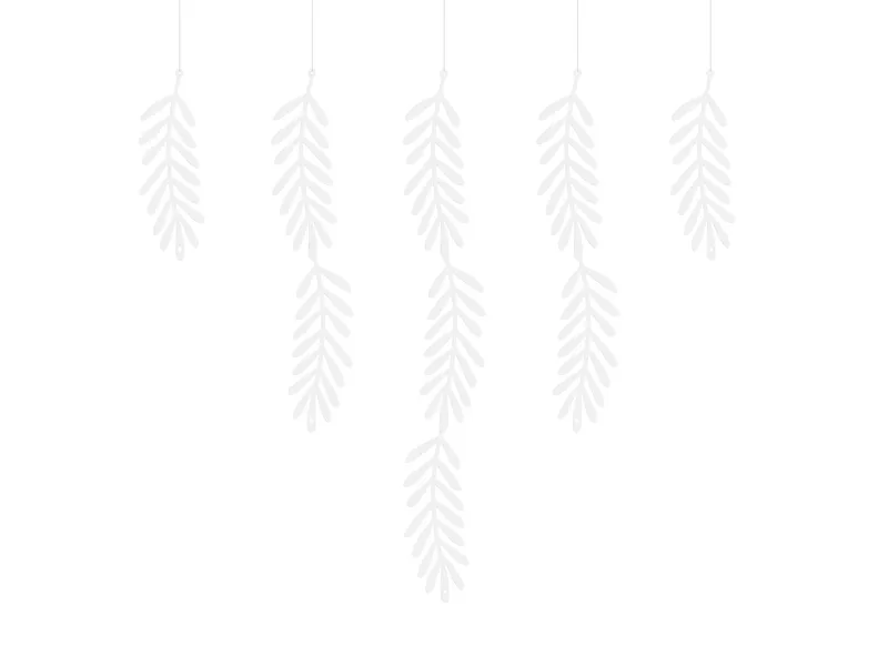 Girlanda Gałązki w kolorze białym, do samodzielnego złożenia, zestaw zawiera 20 gałązek i ok. 2,5 m żyłki, wymiary po złożeniu: wysokość ok. 73 cm, długość ok. 1,8 m.