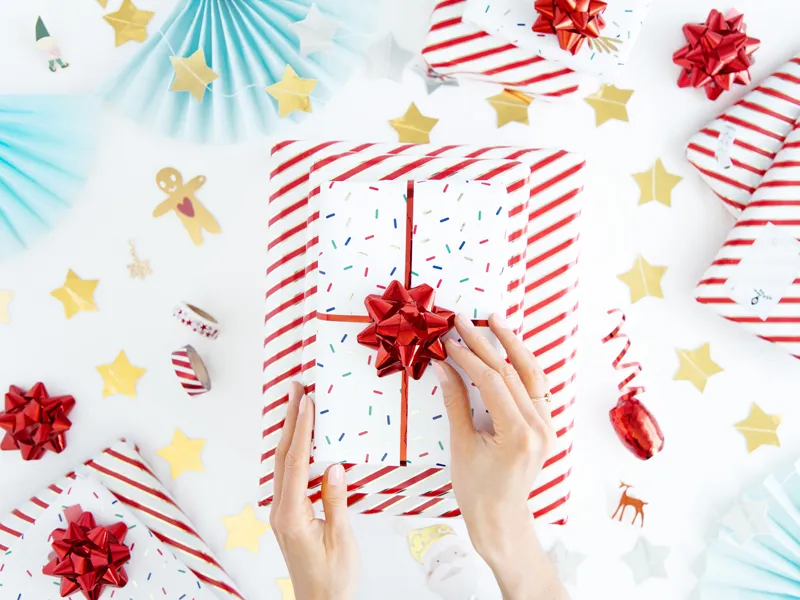 Przeszywana girlanda Gwiazdki wykonana z folii w kolorze złotym lustrzanym, długość ok. 3,6 m, wysokość ok. 5 cm.