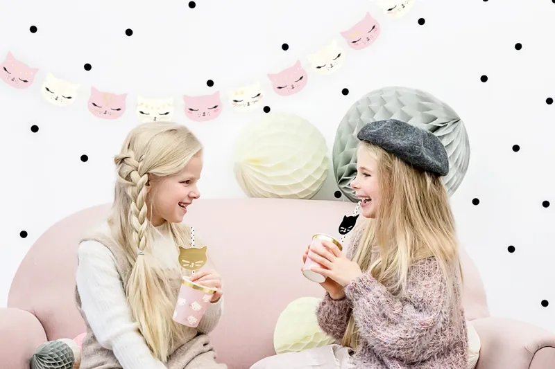 Girlanda kotek to także pomysł na ozdobienie kącika zabaw dla dzieci. Można ją zawiesić w przestrzeni, gdzie maluchy spędzają czas, tworząc im miłą atmosferę, która idealnie wpasuje się w klimat każdego kociego przyjęcia.