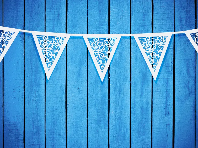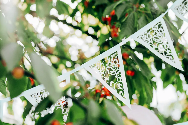 Girlanda papierowa, perłowa, wykonana z papieru, wymiary 19,5 centymetra x 3 metry.