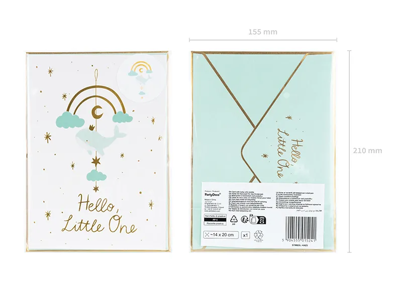 Kartka z zawieszką Wieloryb w kolorze jasnego tiffany blue. Zawiera 11 papierowych elementów do samodzielnego złożenia. Wymiary kartki ok. 14×20 cm.
