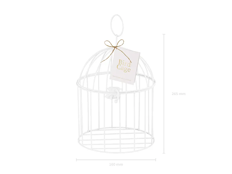 Metalowa klatka dekoracyjna w białym kolorze, wysokość ok. 24 cm.