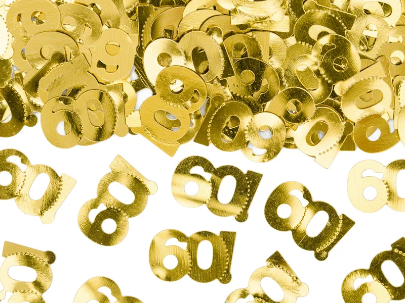 Konfetti metalizowane, liczba 60 w kolorze złotym, 15 g.