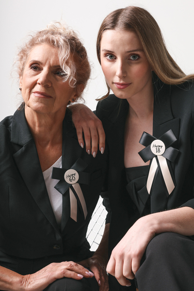 Kotylion na 60 urodziny kremowo-czarny 11×17 cm