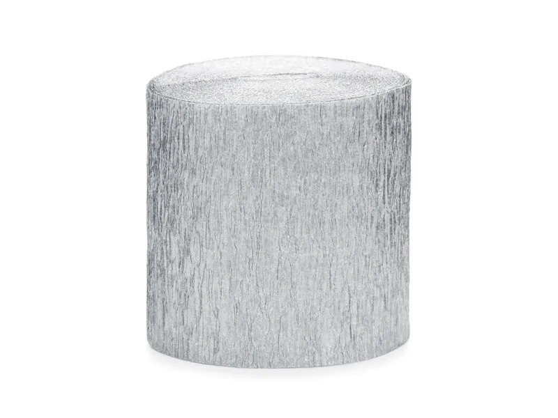 Krepa w kolorze srebrnym, szerokość ok. 5 cm, długość ok. 10 m (1 op. / 4 szt.)
