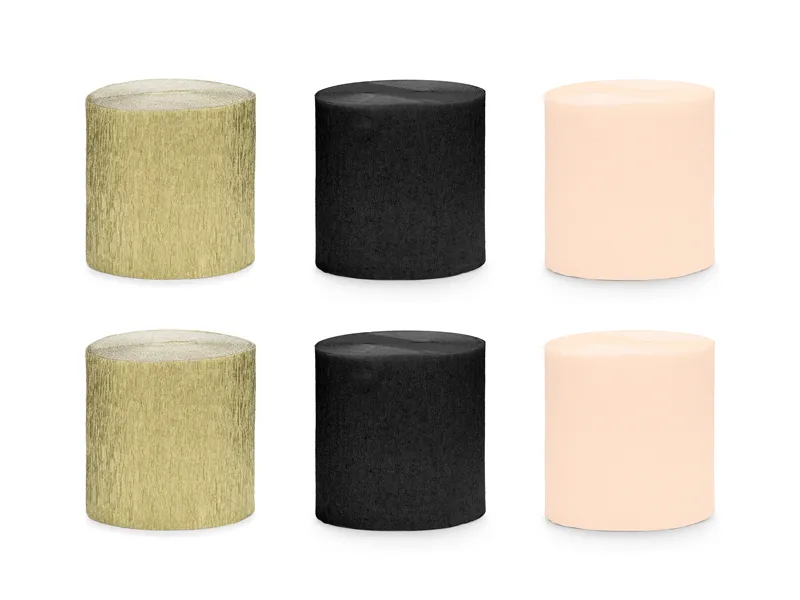 Krepa w kolorach brzoskwiniowych, czarnych i złotych, 6 sztuk, szerokość ok. 5 cm, długość ok. 10 m/rolkę (1 op. / 6 szt.)