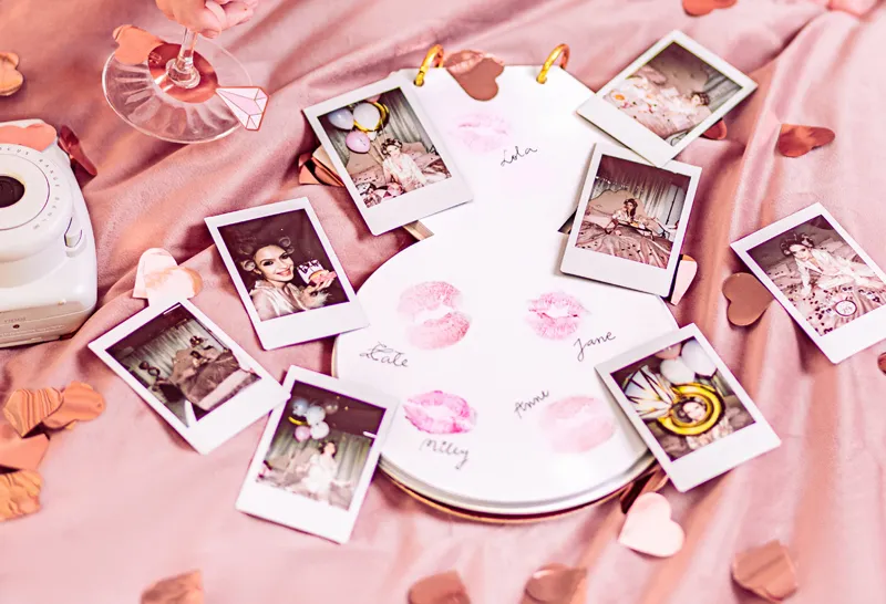Księga gości Pierścionek wykonana z papieru, mix kolorów z napisem ”She said yes” w kolorze różowego złota, zawiera 22 strony do wypisania, wymiary ok. 17 x 27 cm.