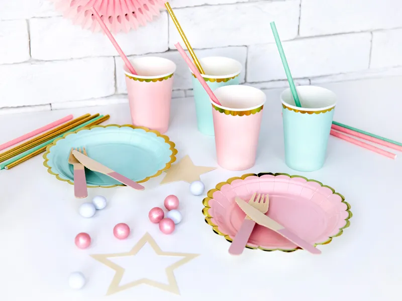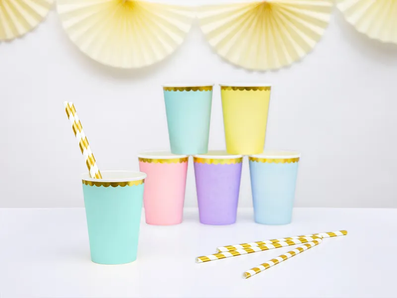 Kolor mięty doskonale współgra z bielą, złotem, srebrem, a także z pastelowymi różami czy beżami. Dzięki temu kubeczki pasują zarówno do przyjęć w stylu boho, glamour, baby shower, jak i eleganckich garden party czy weselnych dekoracji.