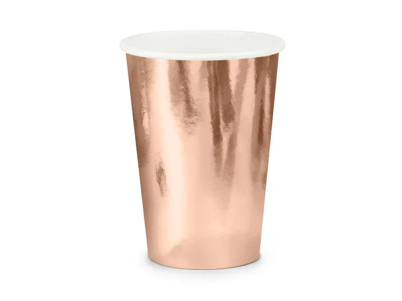 Kubeczki w kolorze różowego złota o pojemności 220 ml to elegancki i stylowy dodatek do każdego rodzaju przyjęcia. Ich subtelny połysk i modna kolorystyka sprawiają, że świetnie sprawdzają się podczas wieczorów panieńskich, urodzin, baby shower, chrzcin, przyjęć zaręczynowych, a także bardziej formalnych wydarzeń, takich jak wesela czy jubileusze. W opakowaniu znajduje się 6 sztuk jednorazowych kubeczków, które łączą funkcjonalność z wyjątkowym wyglądem. Dzięki nim strefa napojów staje się integralną częścią dekoracji i zyskuje na estetyce.