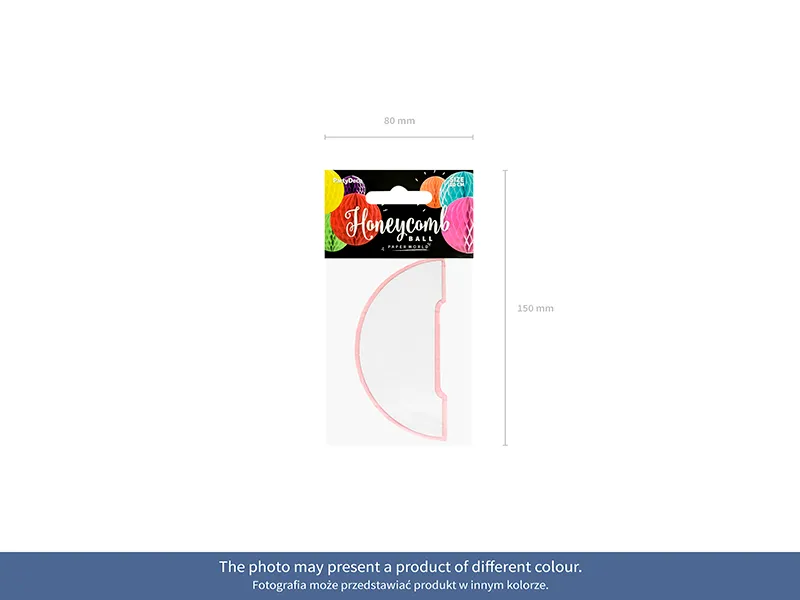Kula bibułowa w kolorze czerwonym, o średnicy około 10 centymetrów. Produkt wielokrotnego użytku. Montaż przy pomocy spinacza.
