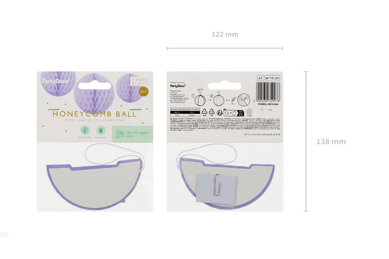 Kula bibułowa w kolorze liliowym o średnicy ok. 10 cm. Produkt wielokrotnego użytku. Montaż przy pomocy spinacza.