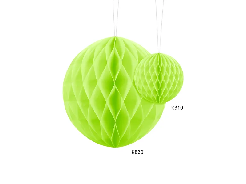 Kula bibułowa w kolorze jasnej mięty, o średnicy około 10 centymetrów. Produkt wielokrotnego użytku. Montaż przy pomocy spinacza.