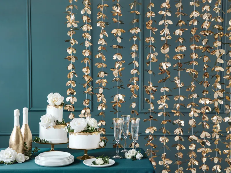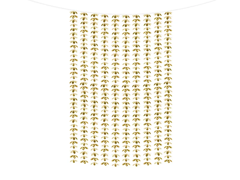 Kurtyna – Kwiatki wykonana z folii w kolorze złotym, wymiary: szerokość ok. 100 cm, długość ok. 210 cm.