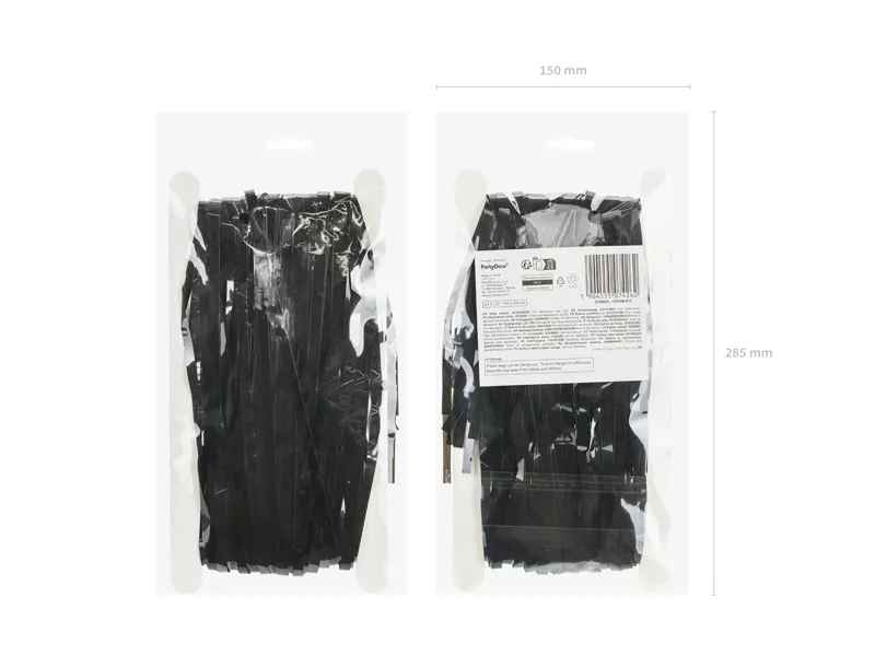 Kurtyna Party metalizowana w kolorze czarnym, szerokość ok. 100 cm, wysokość ok. 200 cm. Wykonana z folii o grubości 20 µm.