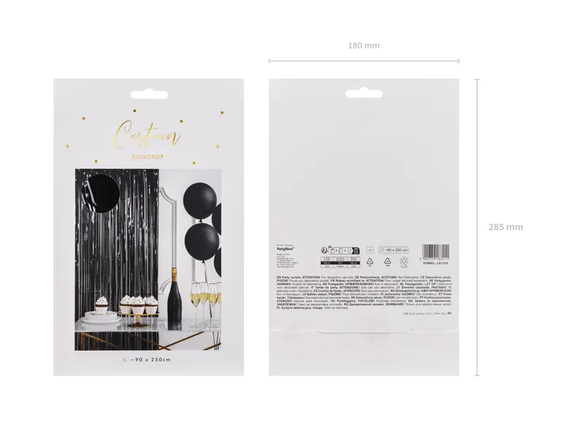 Kurtyna Party w kolorze czarnym, szerokość ok. 90 cm, wysokość ok. 250 cm.