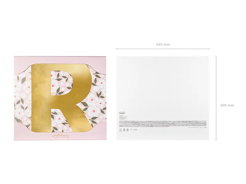 Litera lustrzana ”R” wykonana z hipsu w kolorze złotym, wymiary litery ok. 50×60 cm