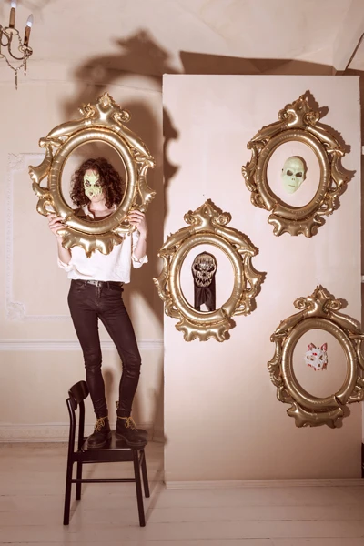 Maska z kapturem Czaszka w kolorze srebrno-czarnym, wymiary maski ok. 18.5 x 24.5 cm, długość kaptura ok. 43 cm.