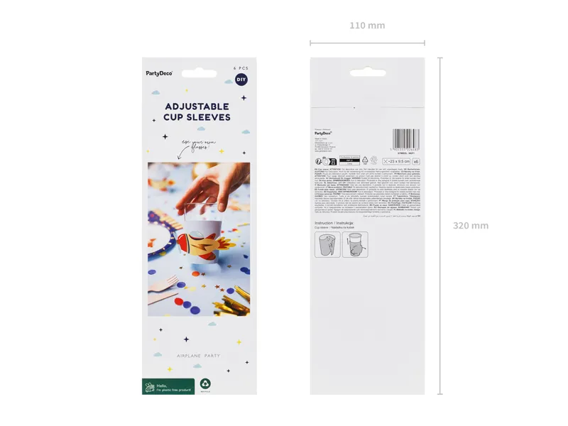 Nakładki na kubki Samolot, mix kolorów, wymiary przed złożeniem ok. 23 x 9.5 cm. (1 op. / 6 szt.)