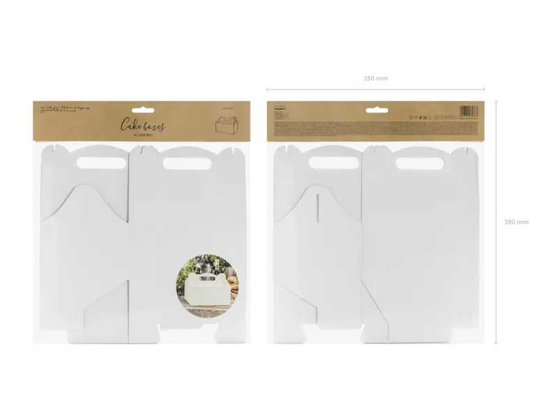 Ozdobne pudełka na ciasto z papieru w kolorze białym, set zawiera 10 sztuk, wymiary pudełka po złożeniu ok. 19x14x9 cm. (1 op. / 10 szt.)