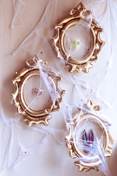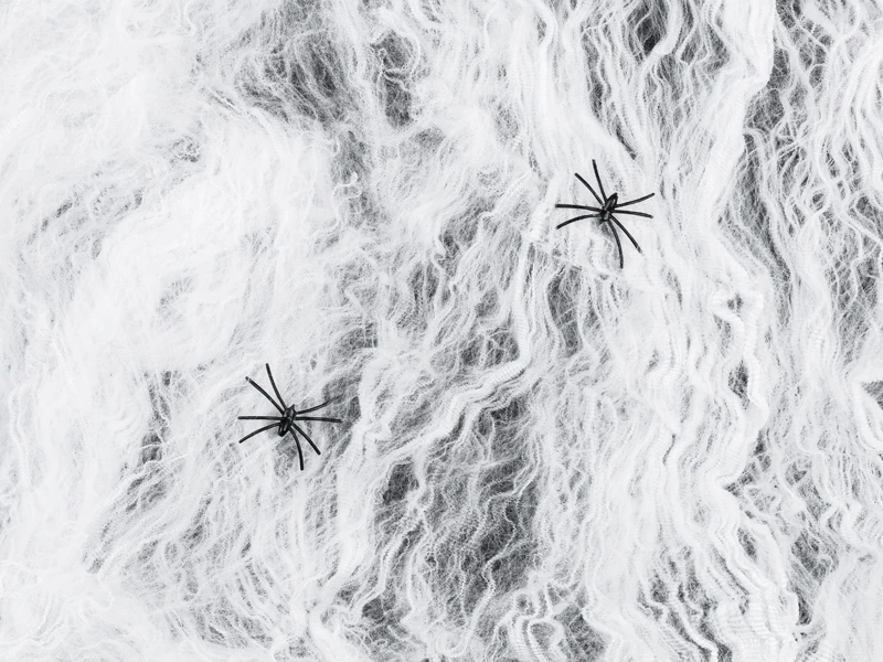 Pajęczyna w kolorze białym z dwoma czarnymi pająkami, waga ok. 200 gram.