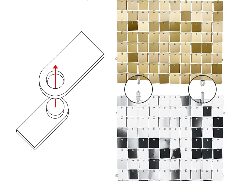 Panel cekinowy, cekiny w kształcie kwadratów, w kolorze bladego turkusu, wymiar ok. 30×30 cm Panele cekinowe posiadają zatrzaski na bokach, które umożliwiają łączenie paneli kwadratowych w spójną całość – patrz instrukcja na karcie produktu. Połączone panele idealnie pasują na stojak SNT5-150-019, które można zamontować używając żyłki. Panele tworzą niesamowity efekt dzięki blaszkom, które ruszają się wskutek ruchu powietrza.