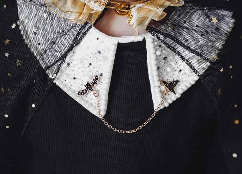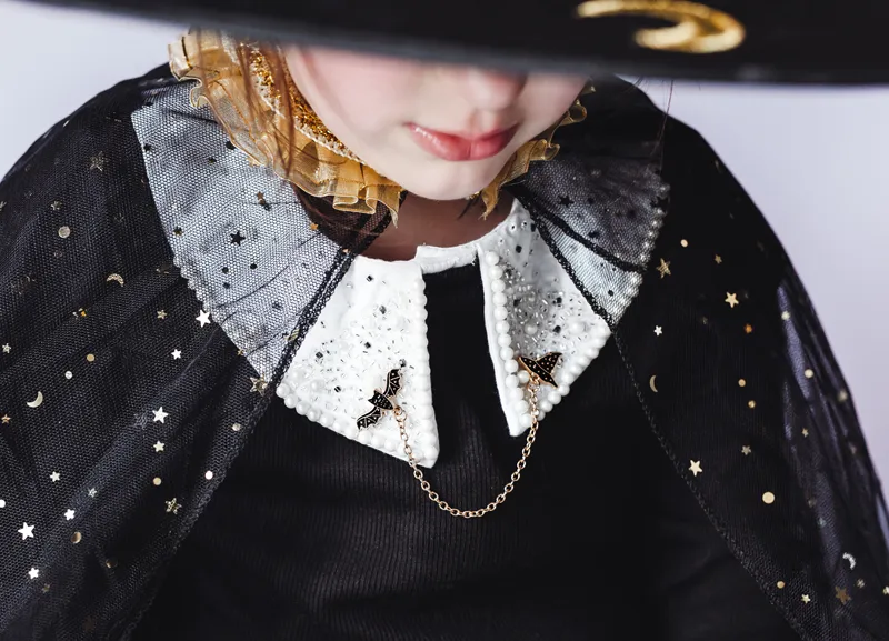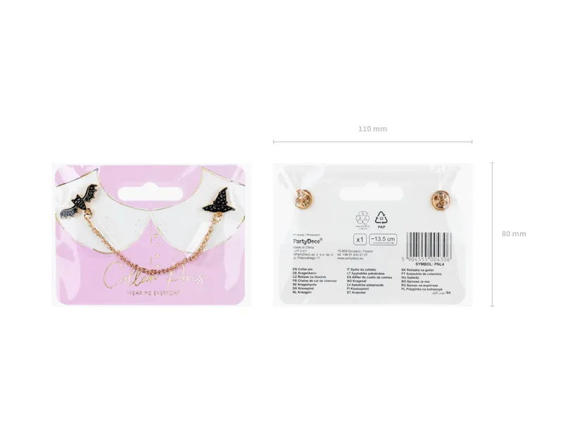 Przypinka na kołnierzyk Nietoperz z łańcuszkiem, mix kolorów, wymiary ok. 13.5 cm.