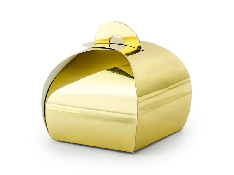 Pudełeczka wykonane ze złotego lustrzanego papieru, wymiary ok. 6 x 6 x 5,5 cm. (1 op. / 10 szt.)
