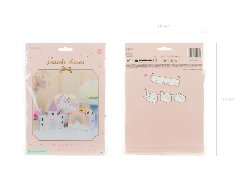 Pudełka na przekąski, popcorn Zamek i Jednorożce to uroczy i praktyczny element dekoracji, który doskonale wpisuje się w magiczną kolekcję „Jednorożec„. Wykonane z papieru wysokiej jakości, są dostępne w delikatnych, pastelowych kolorach, które harmonizują z całą serią dekoracji.