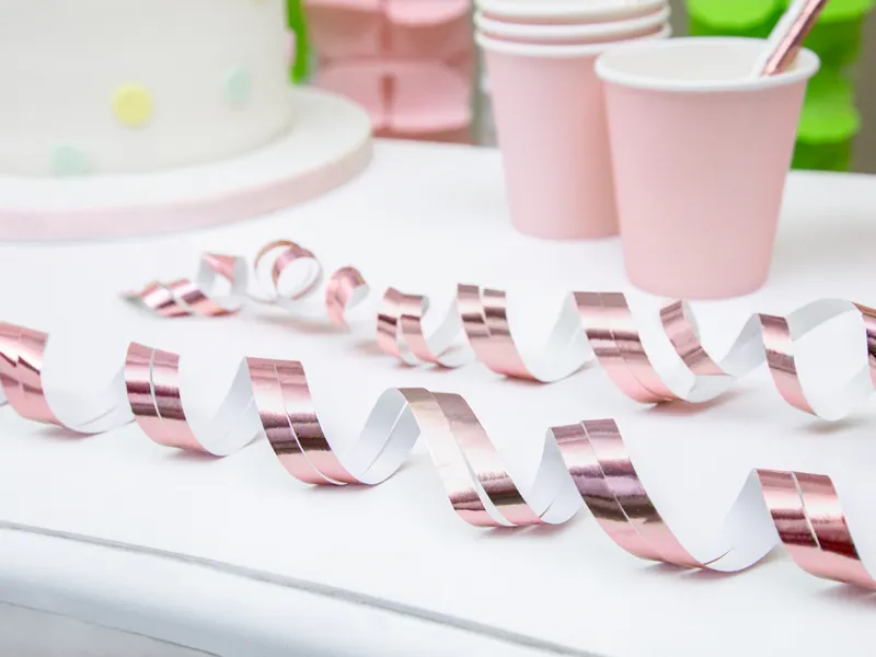 Serpentyny w kolorze różowego złota, długość ok. 3,8 m. (1 op. / 18 szt.)