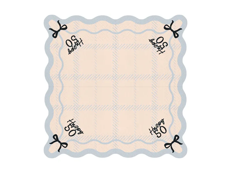 Serwetki papierowe „Happy 50” mix kolorów, wymiary po rozłożeniu ok. 33 x 33 cm, wymiary po złożeniu ok. 16,5 x 16,5 cm. (1 op. / 12 szt.)