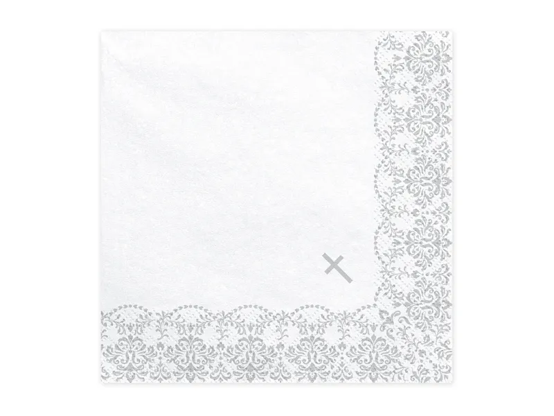 Serwetki Komunijne z ornamentem 33x33cm srebrne (1 op. / 20 szt.)