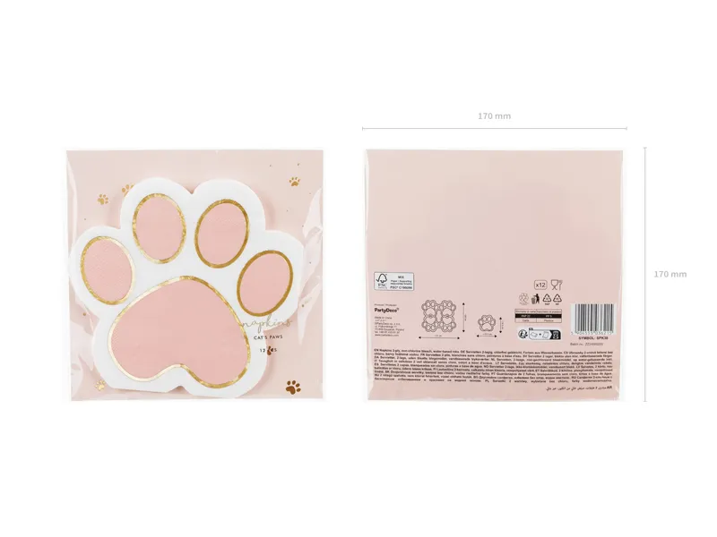 Serwetki mają wyjątkowy kształt, przypominający kotki, z charakterystycznymi łapkami i drobnymi detalami, które dodają im uroku. Kolorystyka jest bardzo przyjazna i delikatna – serwetki występują w pastelowych odcieniach różu, bieli i szarości, co sprawia, że wspaniale wpisują się w tematykę zwierząt i sprawiają, że każde przyjęcie staje się bardziej przytulne i radosne. Na tle jasnego tła znajdują się delikatne akcenty, które nawiązują do motywu kotków. Ich kształt sprawia, że serwetki są zarówno estetyczne, jak i funkcjonalne, pełniąc rolę praktyczną podczas posiłków, ale także dekoracyjną na stole.