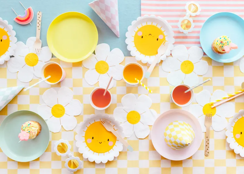 Serwetki papierowe Stokrotka w kolorze białym z kolorowym nadrukiem, wymiary po rozłożeniu ok. 32 x 33 cm, wymiary po złożeniu ok. 16 x 16.5 cm. (1 op. / 12 szt.)